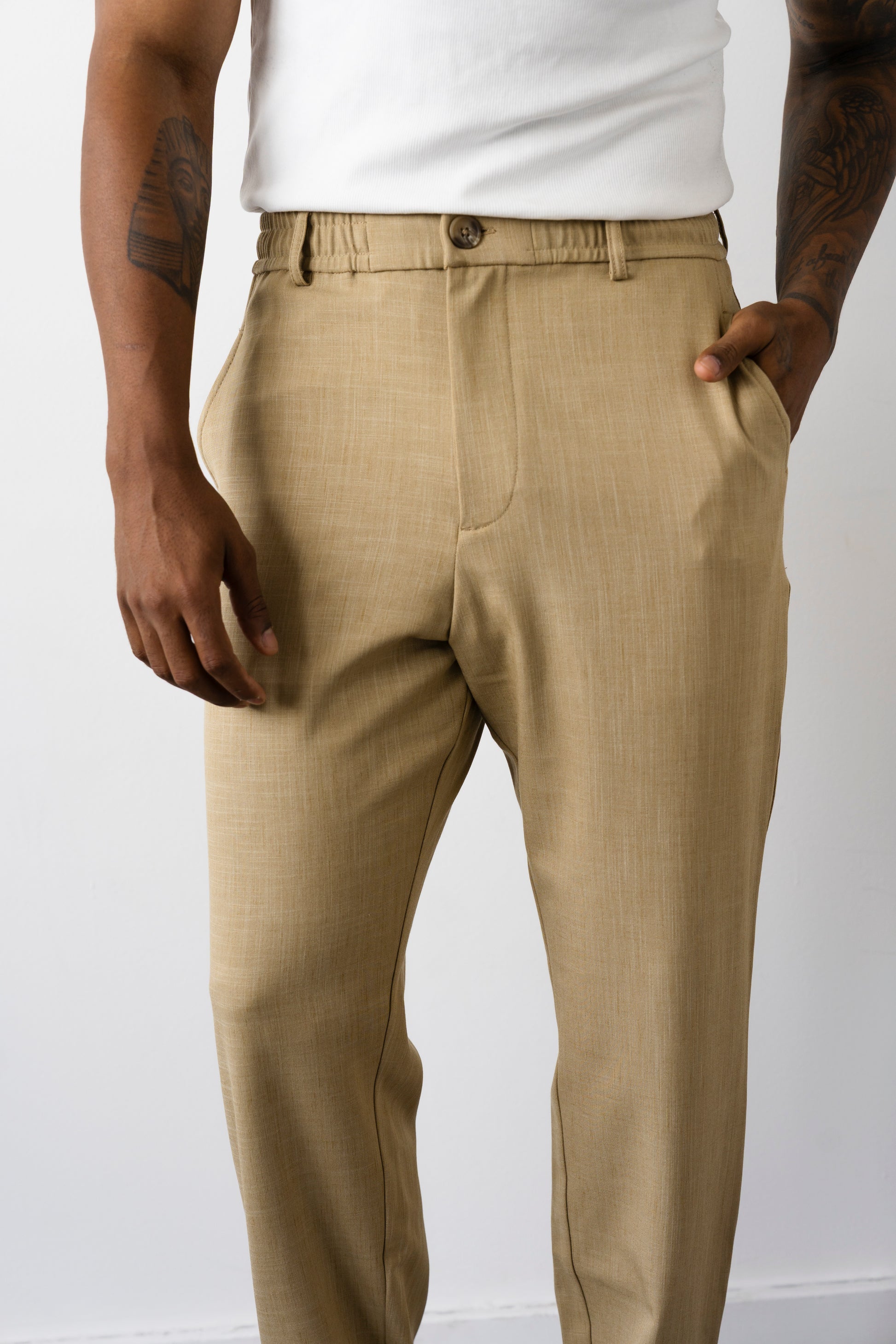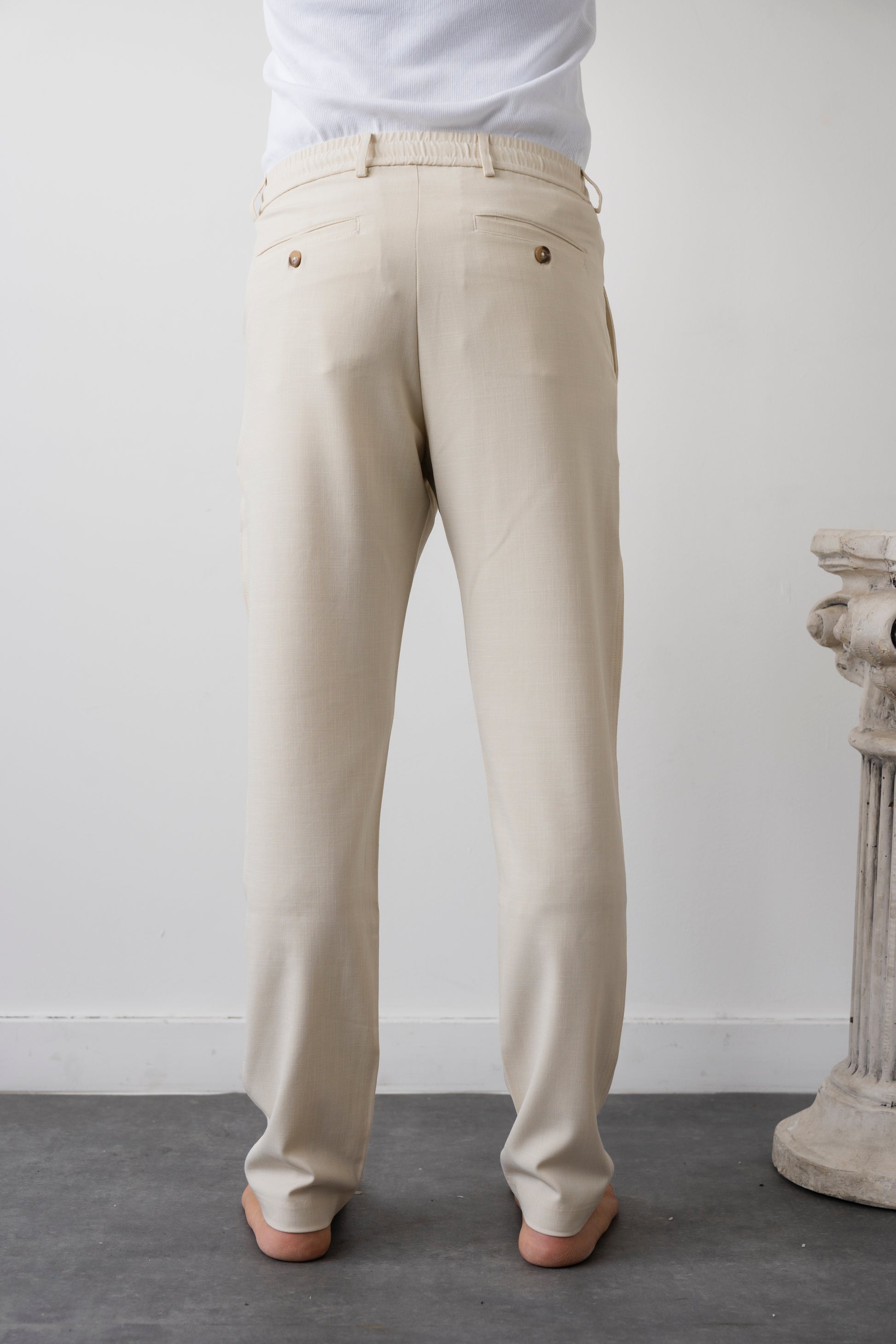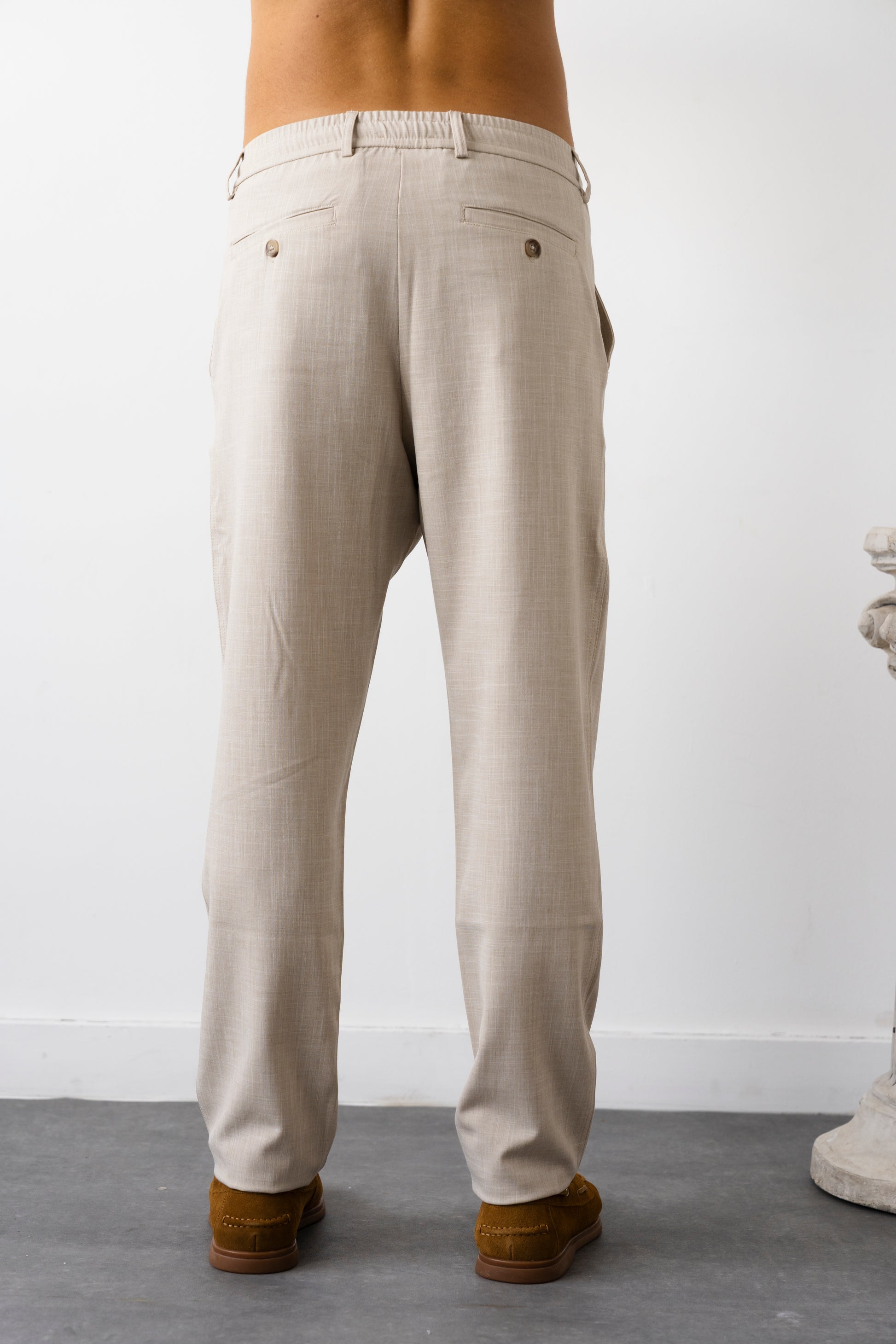 מכנס מבד TR באווירת פשתן – קליל, נושם ונעים ששומר על מראה מסודר לאורך היום.