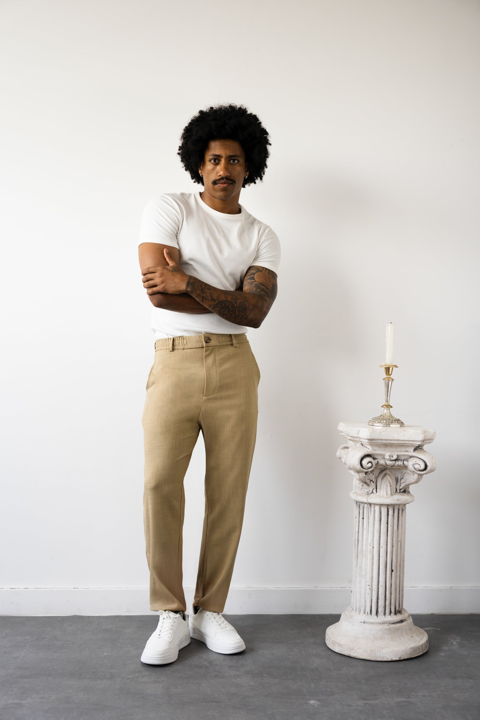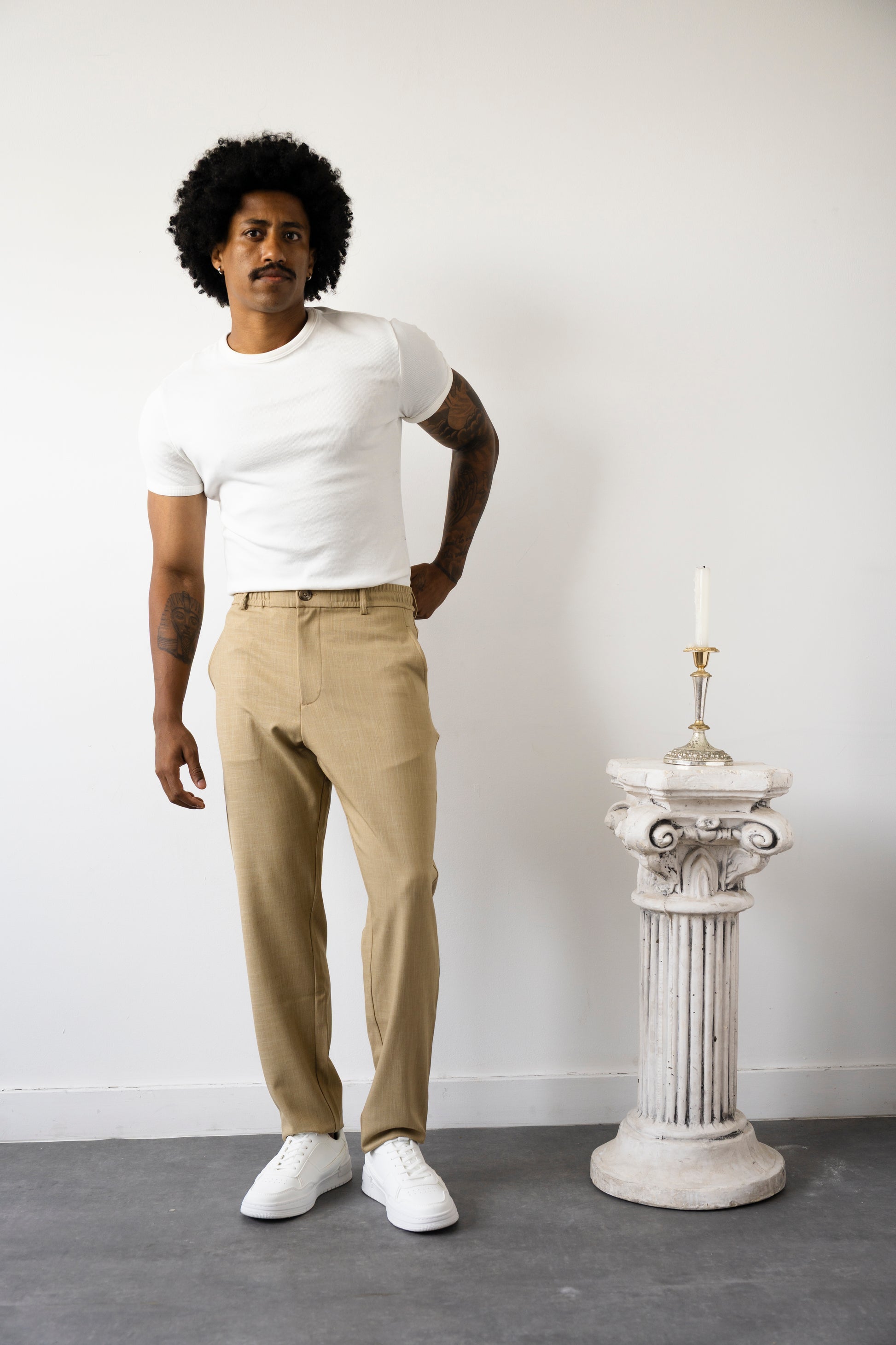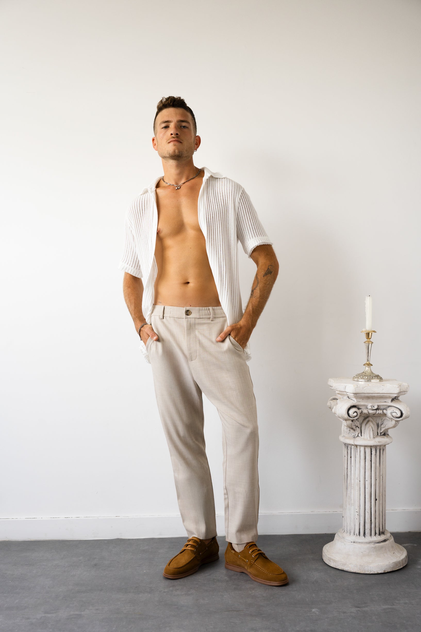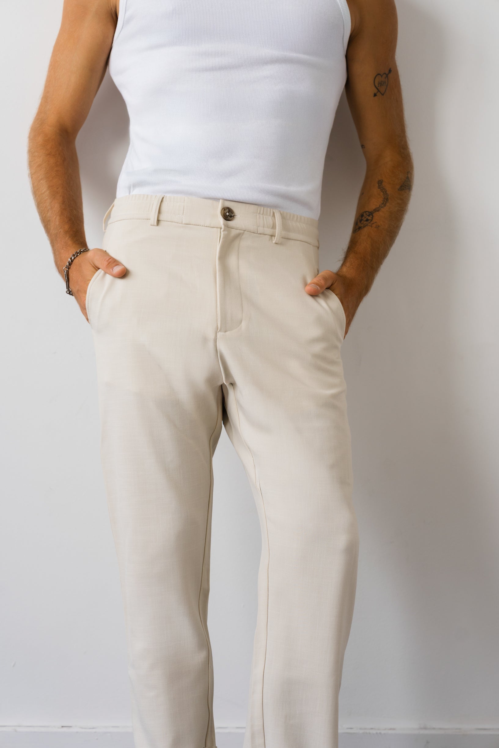 מכנס מבד TR באווירת פשתן – קליל, נושם ונעים ששומר על מראה מסודר לאורך היום.