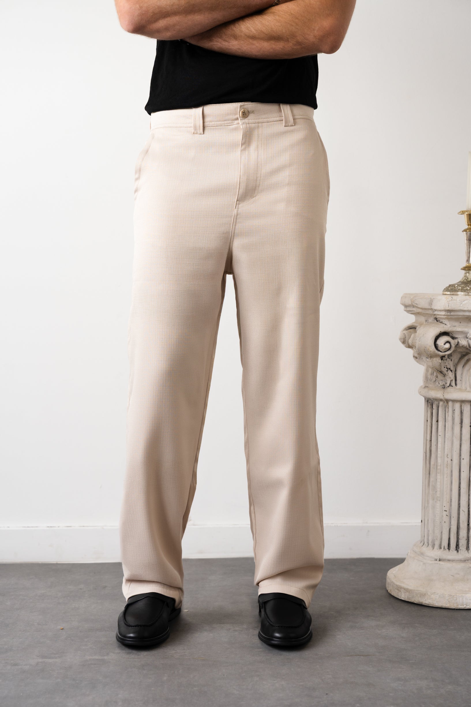 מכנס מבד אורז אלגנטי בגזרה מתרחבת, שמתאים לכל סיטואציה.