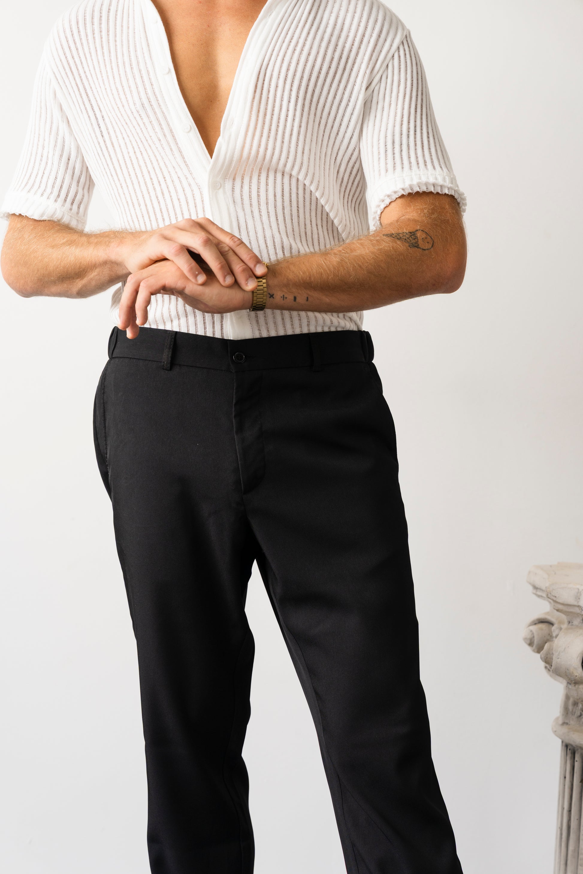 מכנס בגזרת סלים+ ובסגנון Sport Elegant, מבד TR עם אריגה אלכסונית – משלב מראה מהוקצע עם טקסטורה עדינה ונוכחות שקטה.