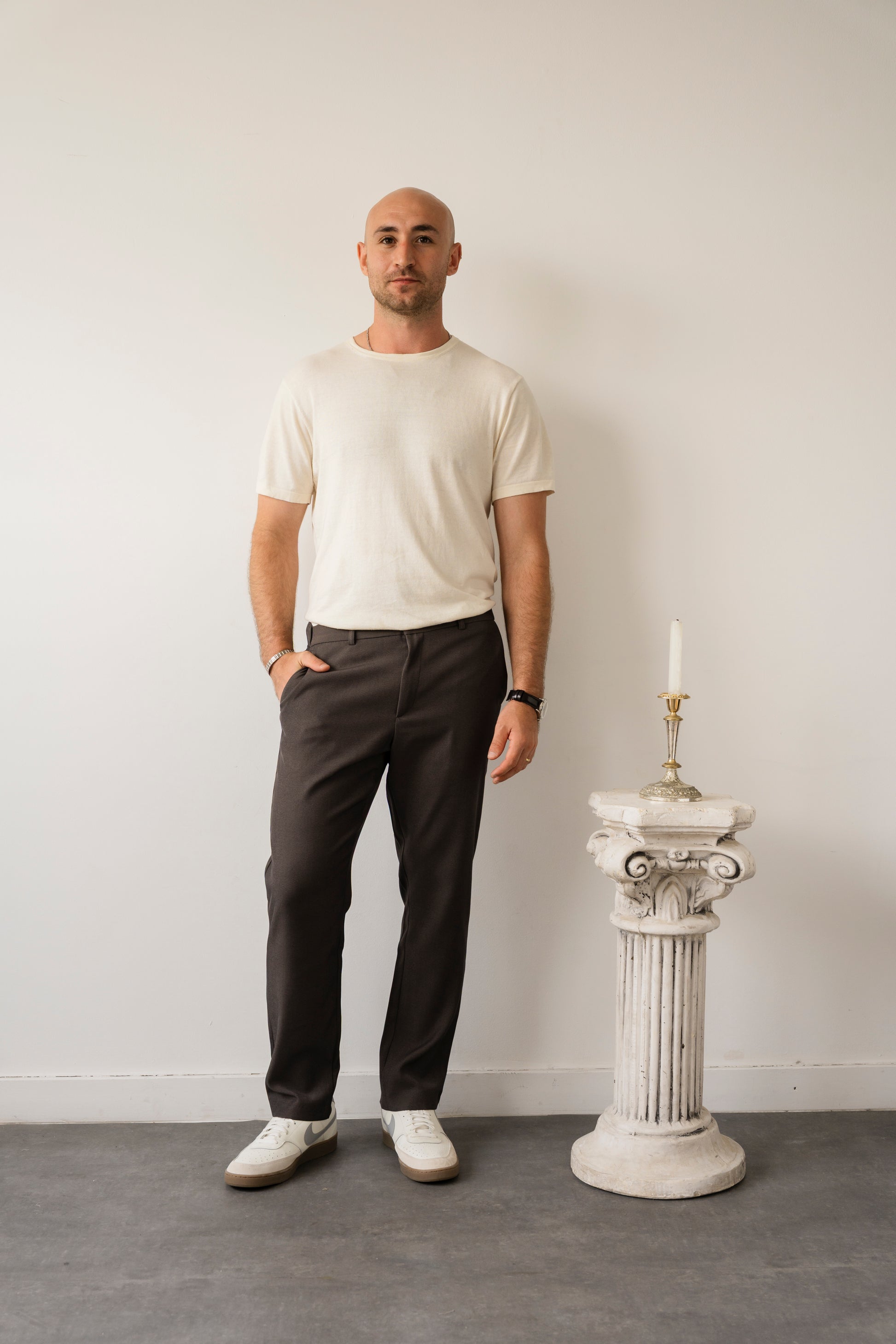 מכנס בגזרת סלים+ ובסגנון Sport Elegant, מבד TR עם אריגה אלכסונית – משלב מראה מהוקצע עם טקסטורה עדינה ונוכחות שקטה.