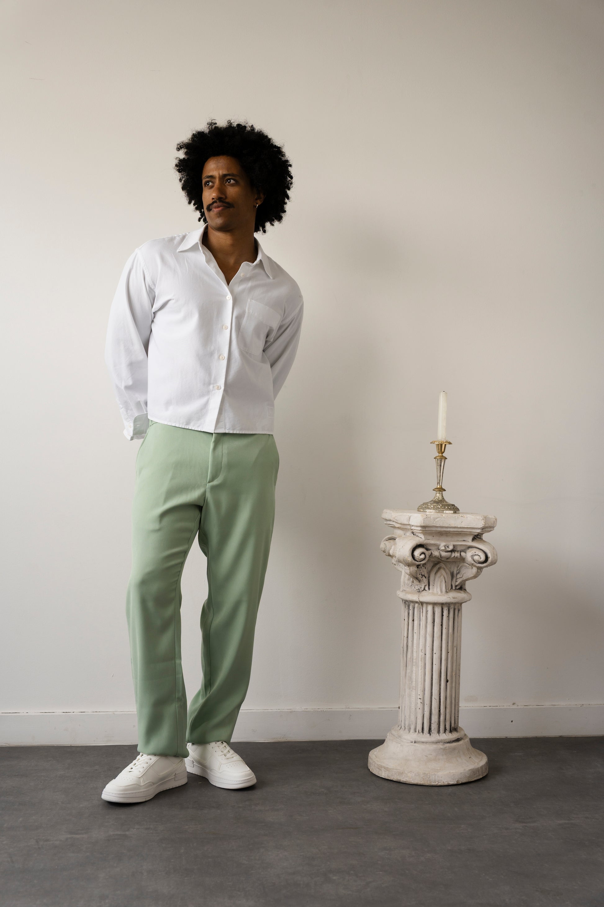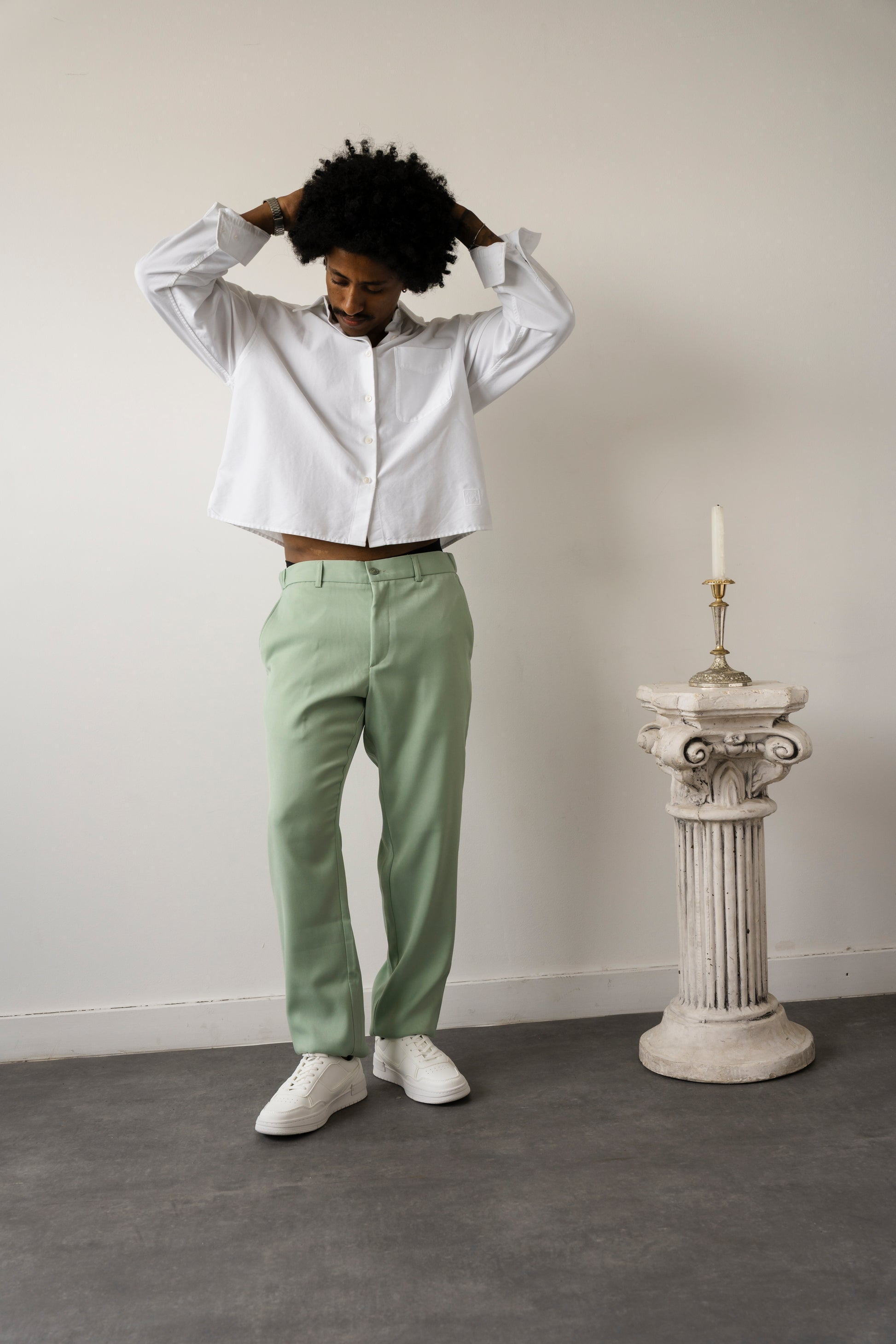💡 איך למדוד נכון? פשוט הקיפו את המותניים במקום שבו הייתם רוצים שהמכנסיים ישבו – זה יכול להיות גבוה יותר (למראה קלאסי) או נמוך יותר (למראה מודרני). אפשר להשתמש בסרט מדידה, או אפילו בחוט/צעיף ולמדוד אותו אח"כ עם סרגל.